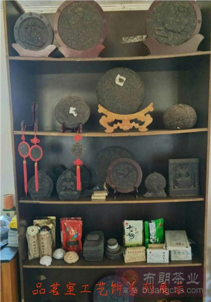 在品茗室的一邊放著公司的茶葉樣品有生茶,熟茶,紅茶,綠茶等,都是我們親力親為制作出的給與消費者最好的禮物。另一邊放的是公司具有代表性的工藝品,有生肖餅,守護神餅,瓜茶等等。